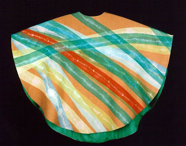 Samt- und Seidenbänder auf Seide plastisch appliziert.