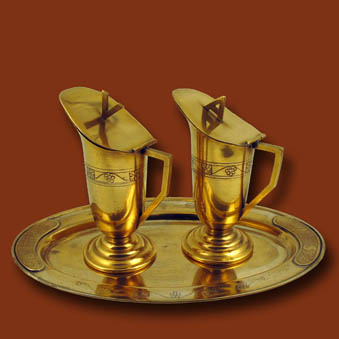 Messgarnitur, Messing vergoldet und zierversilbert, Frankreich 19. Jh.