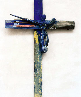 Christus am Kreuz, 2009, 64 x 93 cm, Holz, Papier, Gips, bemalt