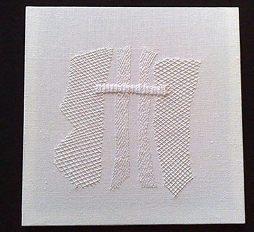 Palla II, 2010, 18 x 18 cm, Leinen mit Weiß-Stickerei, aufgezogen auf feste Einlage