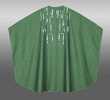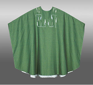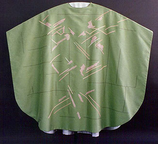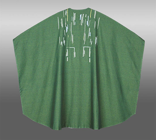 Casel, 2001, 140 x 160 cm, Vorderseite, handgewebte grüne Seide mit freier Stickerei