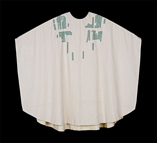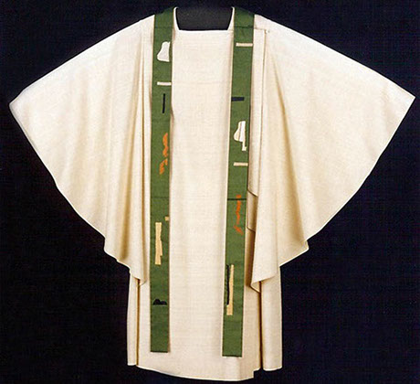 Grüne Stola auf weißer Seidenalbe, 1994, 150 x 160 cm, grüne Seide mit Stickerei und Applikationen,