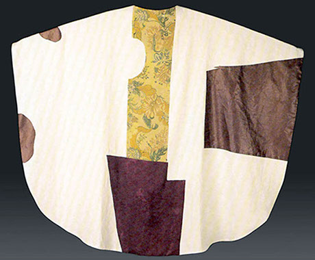 Casel, 1992, 140 x 160 cm, Rückseite aus weißem, alten Tischleinen mit applizierten Paramentenstoffen in Zweitverwendung. Paramentenhaus Wefers, Köln (Pia Steinbrecher) Sankt Peter, Köln.