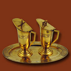 Messgarnitur, Messing vergoldet mit geschliffenen Glaseinsätzen, Frankreich 19. Jh.