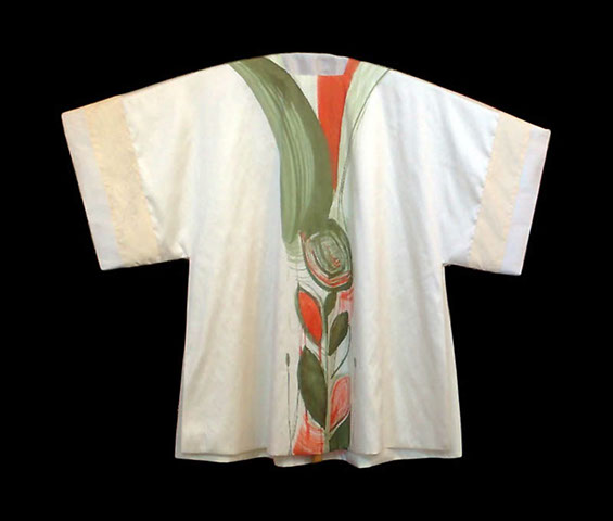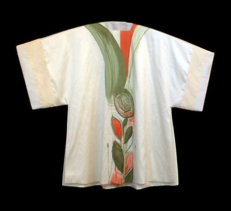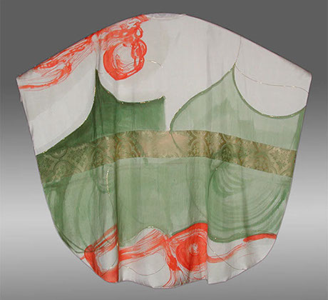 Dalmatik "Grün", 2008, 140 x 160 cm, Vorderseite, Doupionseide und historische Paramentenstoffe, bemalt