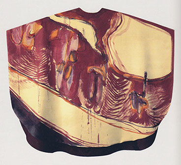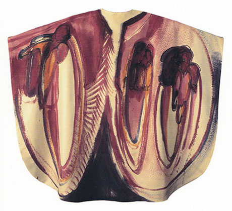 Casel "Violett", 1995: Variante der Casel von 1992, 140 x 160 cm, Rückseite, Doupionseide bemalt,