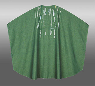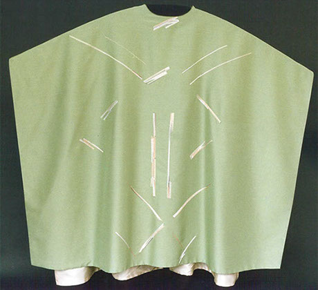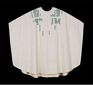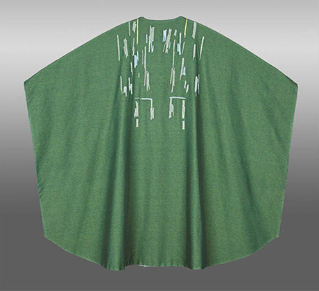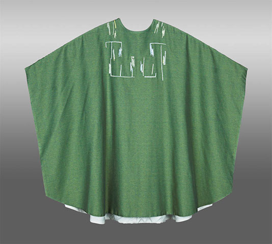 Casel, 2001, 140 x 160 cm, Vorderseite, handgewebte grüne Seide mit freier Stickerei