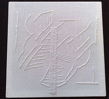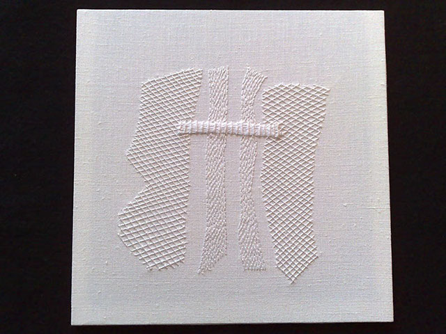 Palla II, 2010, 18 x 18 cm, Leinen mit Weiß-Stickerei, aufgezogen auf feste Einlage