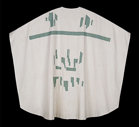 Casel, 2002, 140 x 160 cm, Vorderseite, weiße Bouretteseide mit blaugrünen Applikationen,