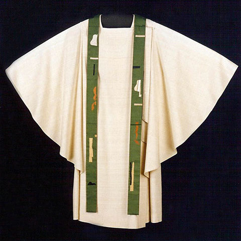 Grüne Stola auf weißer Seidenalbe, 1994, 150 x 160 cm, grüne Seide mit Stickerei und Applikationen,