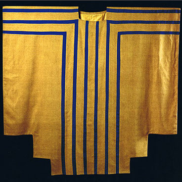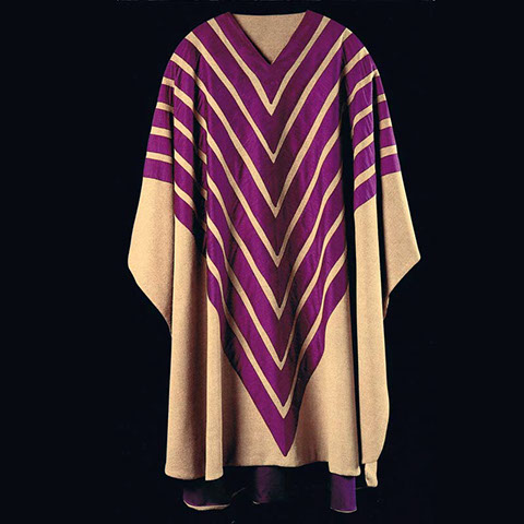 Abgestufte Casel, 1994/95, 140 x 160 cm, Vorderseite, eingefärbte Bouretteseide mit Streifen in Seidenleinen unterlegt