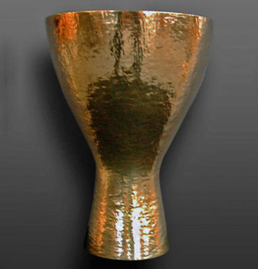 Silbertreibarbeit, vergoldet mit fein strukturierter Oberfläche, 1970er Jahre, Höhe 18 cm