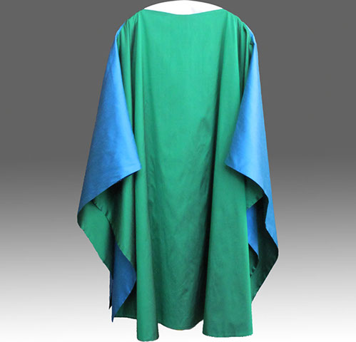Casel 2011, 140 x 160 cm, Eine gänzlich Grüne und eine gänzlich Blaue Seite jeweils in Doupionseide, wobei hier die Grüne Seite als Vorderseite abgebildet ist, aber auch als Rückseite getragen werden kann, Paramentenhaus Wefers Köln